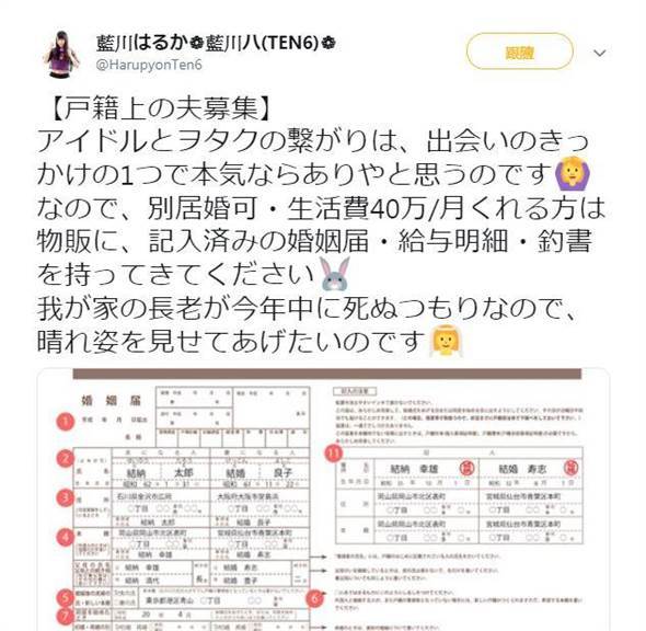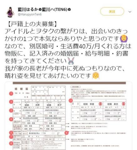 日本女偶像公开招募老公 每月给40万就能跟她结婚 蓝川遥