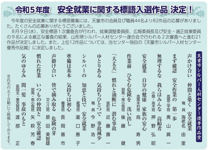 安全 衛生 標語 面白い 労働衛生 交通安全標語の作品一覧 社内募集を行いました